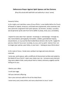Deliverance Prayer Against Spirit Spouse and Sex Demons Pray this Deliverance Prayer Against Spirit Spouse and Sex Demons for Freedom in Jesus Name.