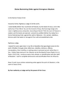 Divine Restraining Order against Strongman Absalom Pray this prayer Divine Restraining Order against Strongman Absalom for Freedom from Rebellion.