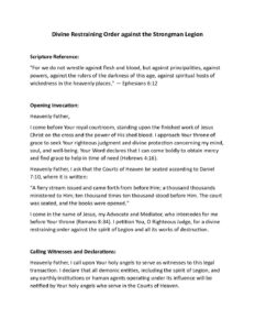 Divine Restraining Order against Strongman Legion Pray this prayer to bind the Strongman Legion and to remove it’s legal rights.